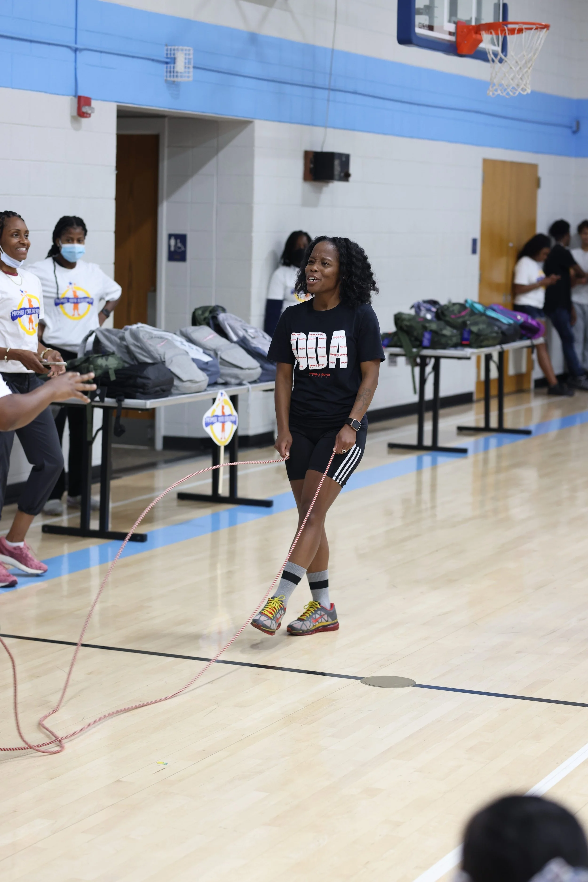 Book us for one or two hours at your event to turn the ropes and invite your supporters to jump in with us. We can teach anyone how to jump in less than one minute.